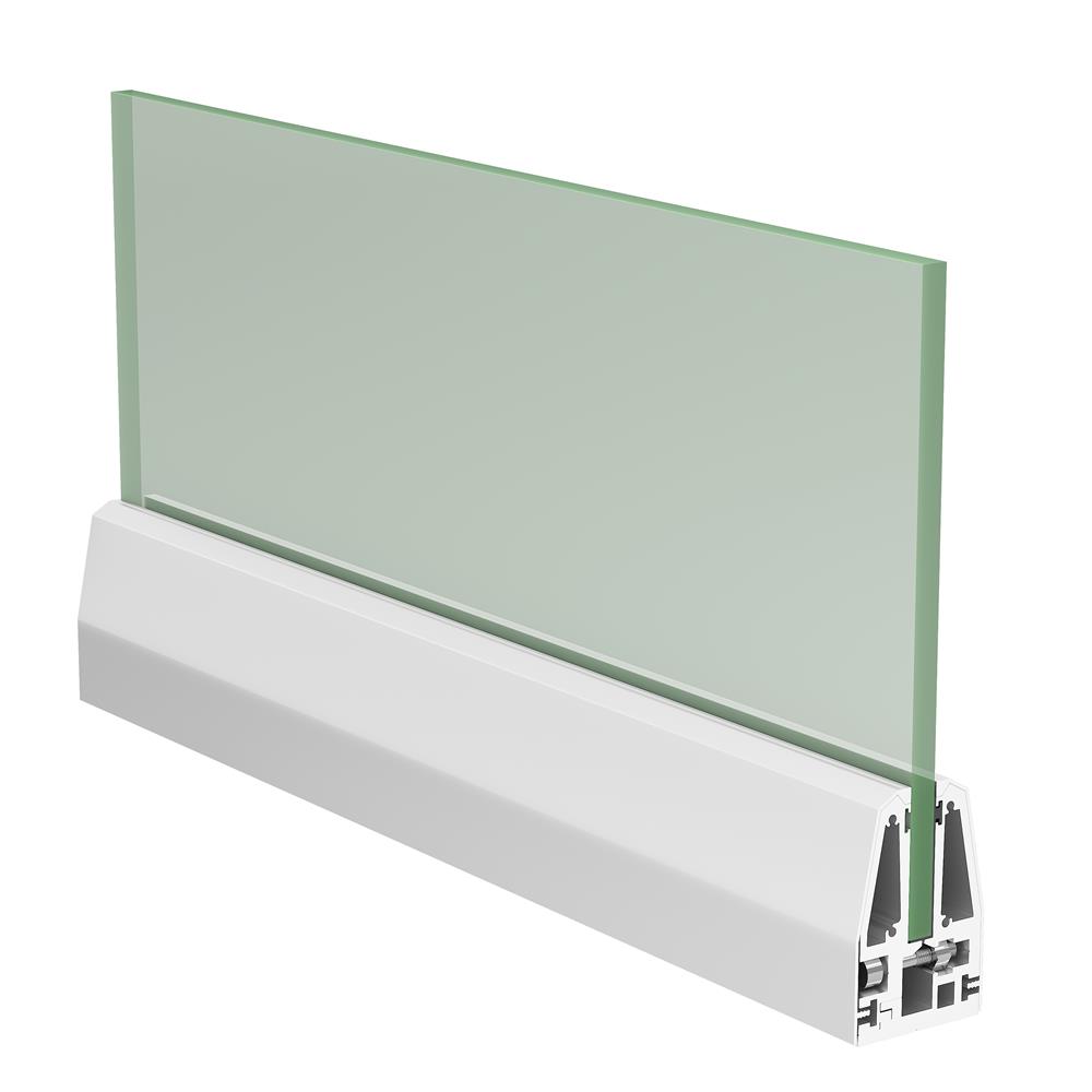 Prism Rail PR 01 BRC railing system is top mounted system. The brackets are anchored with the bolts. The brackets are covered with cover profile in anodize, wooden and any other shade of powder-coating. The system is compatible with glass of 12mm thickness and 900mm height.